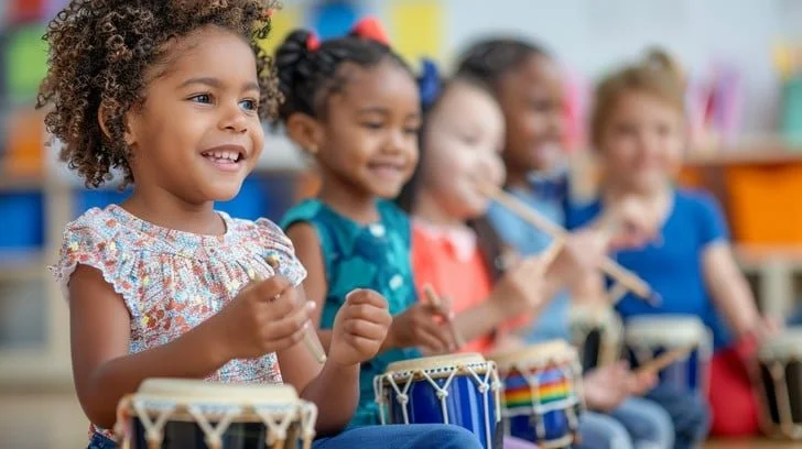 Rockin Rhythms: Rhythms & Coordination Class (Ages 3–5) Designed just for preschoolers, this group class blends music education with motor-skill development. Children explore rhythm through drums, shakers, scarves, dance, and playful musical activities that support: ✔ Gross & fine motor coordination ✔ Early beat keeping ✔ Social interaction ✔ Creative expression